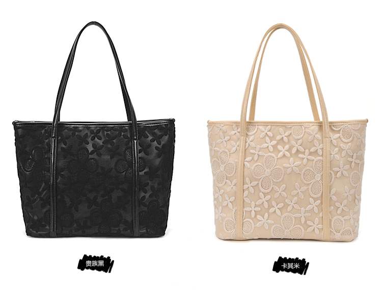 กระเป๋าตกแต่งด้วยลายลูกไม้ ดูเก๋และหวาน สามารถถือ คล้องแขน และมีสายสะพายแยกต่างหากให้ค่ะ ด้านหลังมีกระเป๋าพร้อมซิบโลโก้Maomao มี 2 สี ให้เลือก คือ ดำ noble black และ สีครีม khaki meter ขนาดประมาณ 33cmx28cmx13cm ด้านบนกว้าง 39cm มี 2 สีให้ ราคาปลีก 768 บาท ราคาส่ง 718 บาทค่ะ
