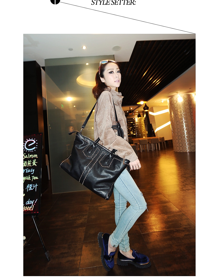 กระเป๋าสวยมากค่ะ ตกแต่งด้วยวัสดุสีทองเก๋ค่ะ กระเป๋าทำด้วยหนังPU อย่างดี มี 2 สี ให้เลือก คือ สีดำ และสีแดง มีสายสะพายแยกให้ต่างหากค่ะ ขนาดความกว้าง 41cmxสูง29cmxลึก12.5cm ด้านบนกว้าง 47cm ค่ะ ราคาปลีก 1108 บาท ราคาส่ง 1058 บาทค่ะ