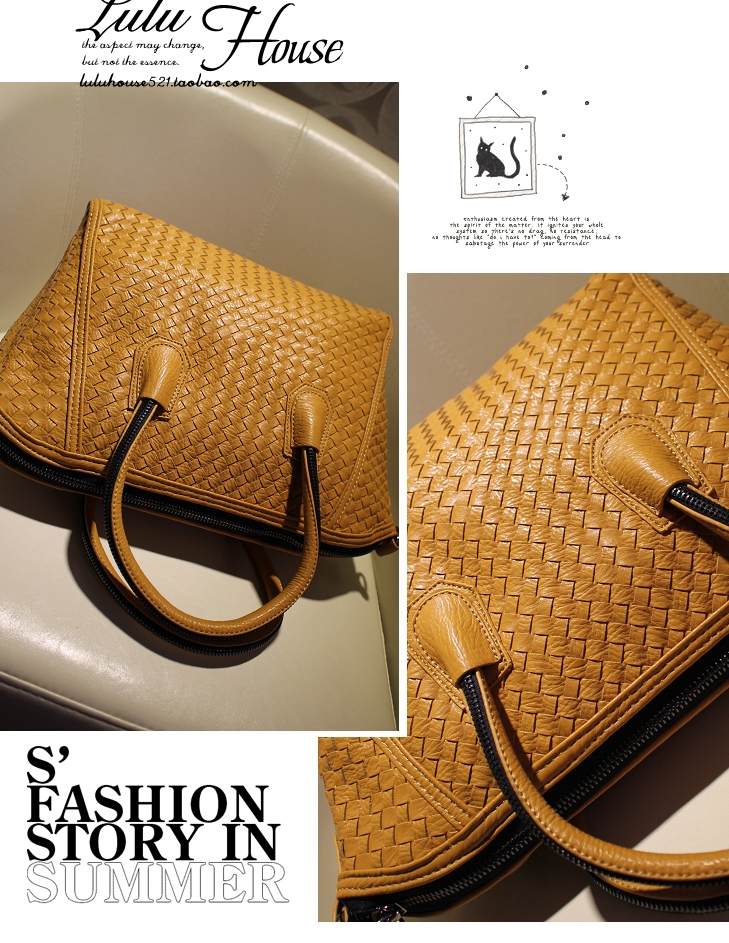 หนังเป็นหนังลายถักทำให้ดูหรู ใช้ถือ คล้องแขนได้ค่ะ และมีสายสะพายแยกให้ต่างหากสำหรับวันสบายๆ ทรงสวย หูกระเป๋าตกแต่งด้วยซิบสีดำดูดีค่ะ ทรงสวยเนี๊ยบ กระเป๋ามีขนาด 2 ขนาดค่ะ คือ ขนาดกลางมีขนาดประมาณ กว้าง 26cmx สูง25cmx ลึก 13cm ด้านบนกว้างประมาณ 31cm และขนาดใหญ่มีขนาดประมาณ กว้าง 33cmx สูง30cmx ลึก 14cm ด้านบนกว้างประมาณ 40 cmสีให้เลือกด้วยกัน 3 สีค่ะ คือ สีน้ำเงิน trumpet blue สีเหลือง queen yellow และ สีดำ classic black ขนาดกลางราคาปลีก 1,098 บาท ราคาส่ง 1,168 บาทค่ะ ขนาดใหญ่มีราคาปลีก 1,198 บาท ราคาส่ง 1,268 บาทค่ะ สินค้าเข้า 23-30/10 ค่ะ
