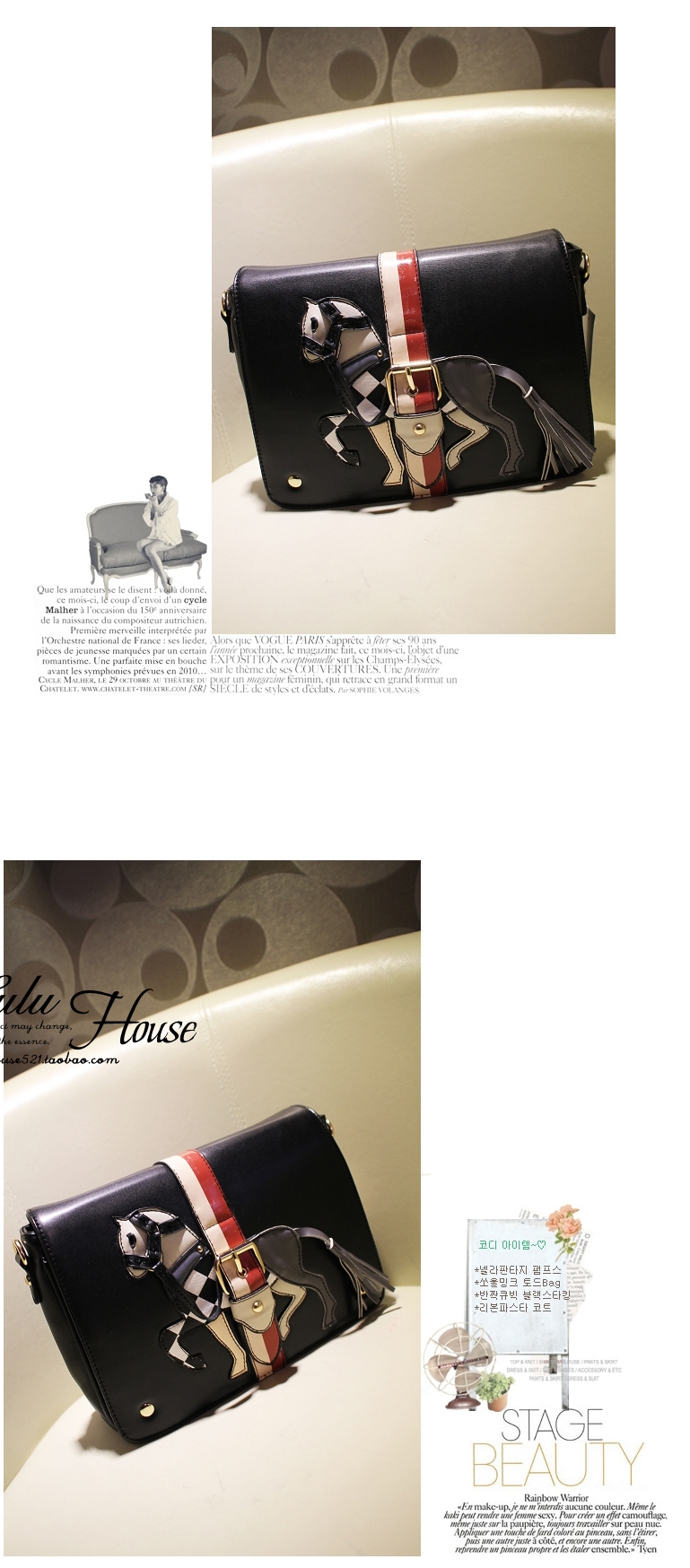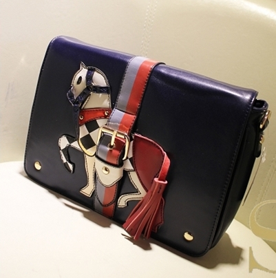 กระเป๋าสไตล์เกาหลี ดีไซน์เก๋มากๆ ค่ะ ด้านหน้ากระเป๋าตกแต่งเป็นรูปม้า งานละเอียดมากๆ ค่ะ งานเนี๊ยบเหมือนในรูปเลยค่ะ ขนาดประมาณ 28cmx21cmx8cm มีให้เลือก 3 สี สีน้ำตาล สีน้ำเงิน และสีดำ ราคาปลีก 918 บาท ราคาส่ง 868 บาทค่ะ