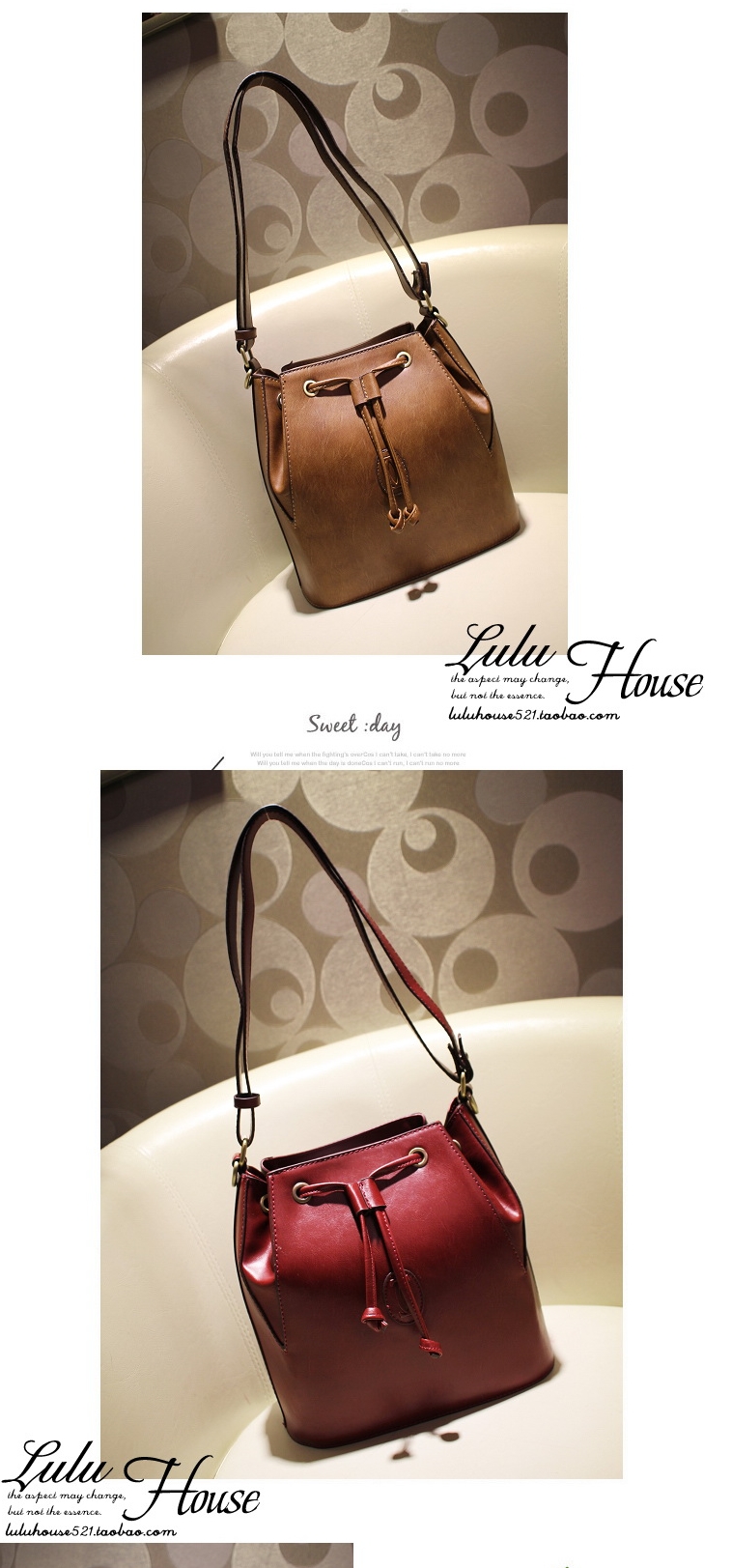 งานสวยเนี๊ยบสุดๆ ทำด้วยหนัง PU อย่างดี สีและลายหนังกระเป๋าเหมือนรูปถ่ายเลย มี 2 สีให้เลือก คือ สีน้ำตาล retro brown และสีแดง nostalgia red ขนาดประมาณ 26cmx27cmx15cm ราคาปลีก 1,124 บาท ราคาส่ง 1,064 บาทค่ะ